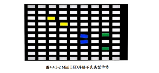 如此高密度产品 ,万分之一的不良率会导致灾难性的品质问题一大量的不良品要修、 密 度太大无法修。 显示需求 ,LED偏移、旋转、浮高都需要管控,图4.4.3-2Mini LED焊接不良类型示意。